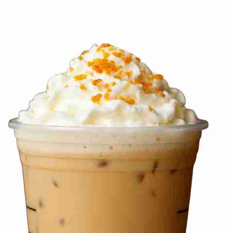 Brew your espresso and pour it into a 16 oz mug. Stir in 3–4 tablespoons of caramel brulée sauce (warm it slightly if it’s cold). Steam the milk until it’s hot and foamy, then pour over the espresso mix. Top with whipped cream and a generous sprinkle of crunch topping.