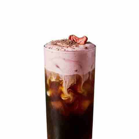 Start with a smooth cold brew base over ice, lightly sweetened with vanilla. The real magic happens on top. Strawberry syrup and white chocolate melt into heavy cream, then get frothed until thick but still pourable. When that foam hits the cold brew, it slowly drips down, changing the coffee with every sip.