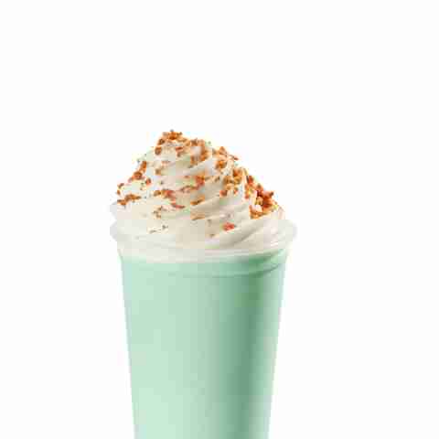 Blend thick, pour into a bowl, and top with churro crunch, graham crumbs, whipped cream, and a cherry. Eat with a spoon like a pie-sundae hybrid.