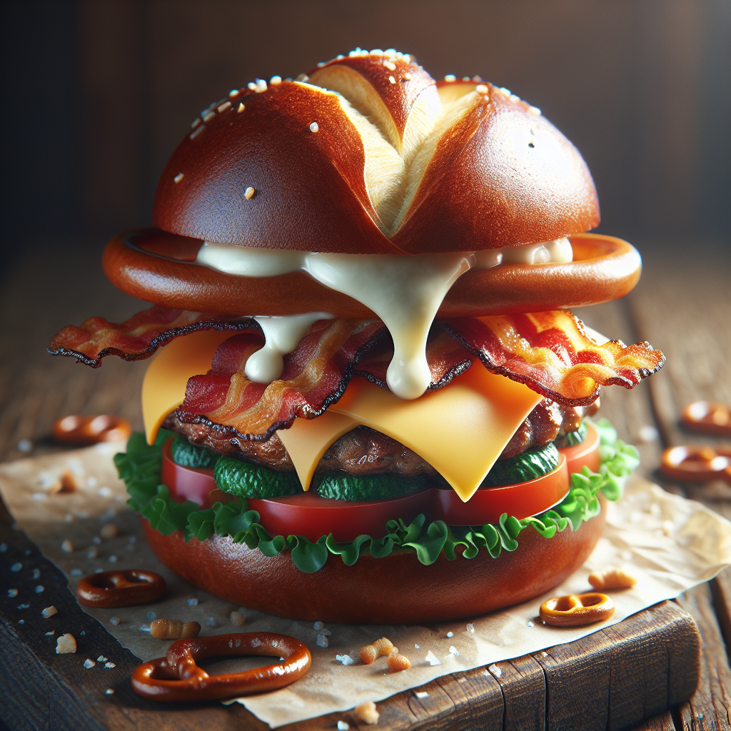 If you’re a fast-food enthusiast, it’s likely you’ve indulged in Wendy’s Pretzel Bacon Pub Burger, a masterpiece of flavors wrapped in a pretzel bun. From its savory Muenster cheese to crispy bacon, and topped with fried onions and a sumptuous beer cheese sauce, this burger stands out in the fast-food world. But what if you could recreate this culinary delight in your own kitchen? Imagine the satisfaction of biting into this homemade version, each bite enveloped in creamy sauces and packed with a flavor punch.